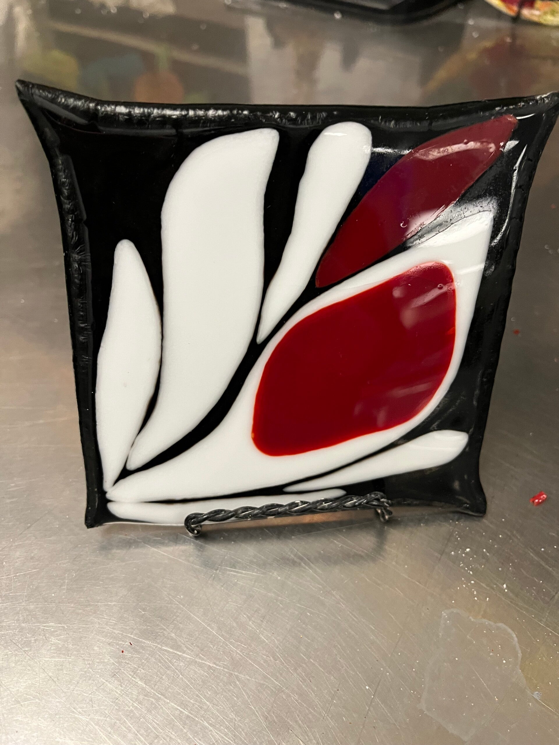 Glass fused flower plate