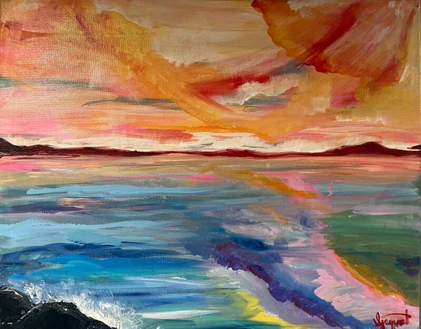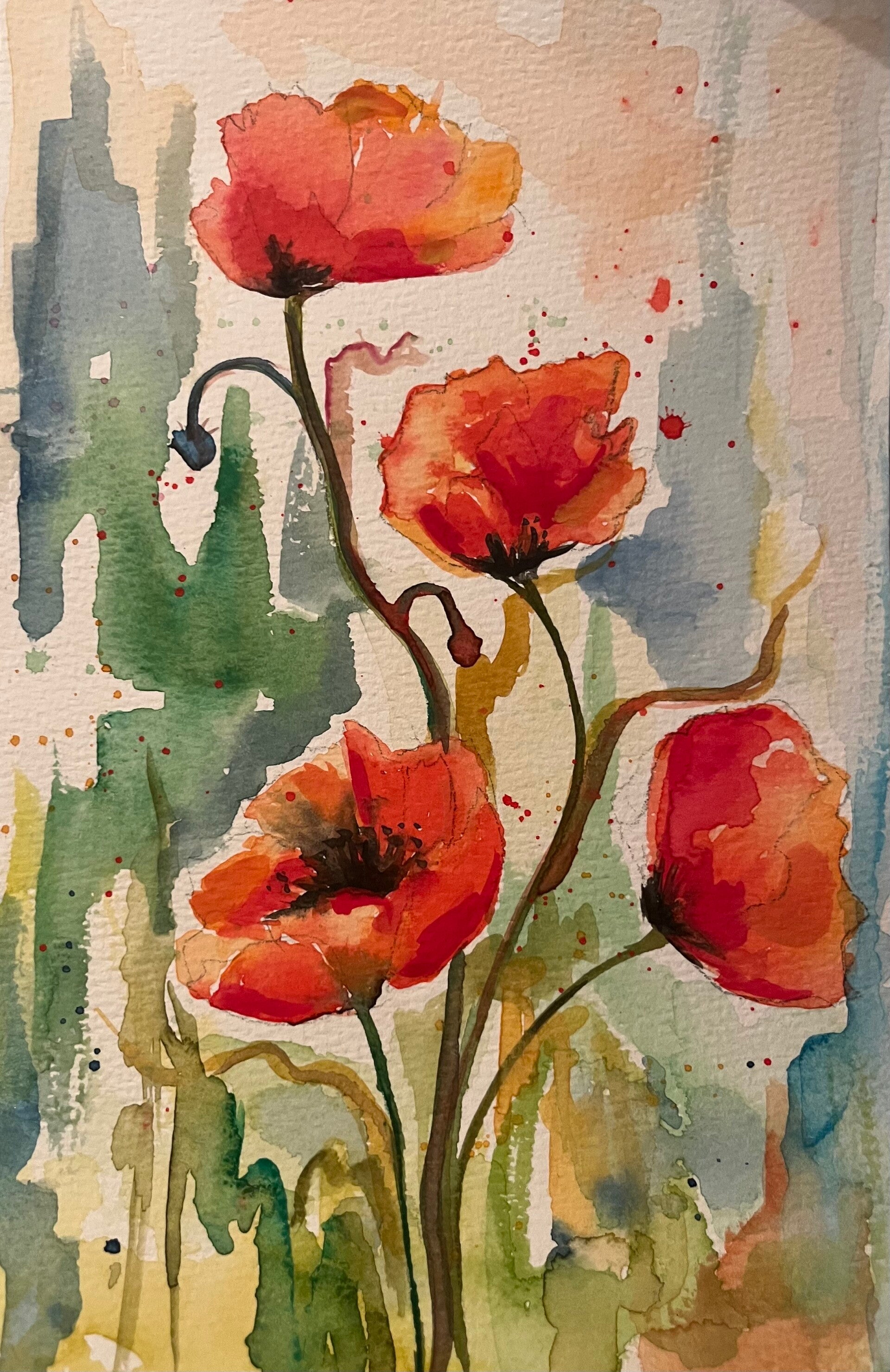 Generally, acrylic canvas originals are sized 16x20 and are for sale at $300-$400. Watercolors are on heavy weight watercolor paper in a variety of sizes. For original inquiries please contact me.